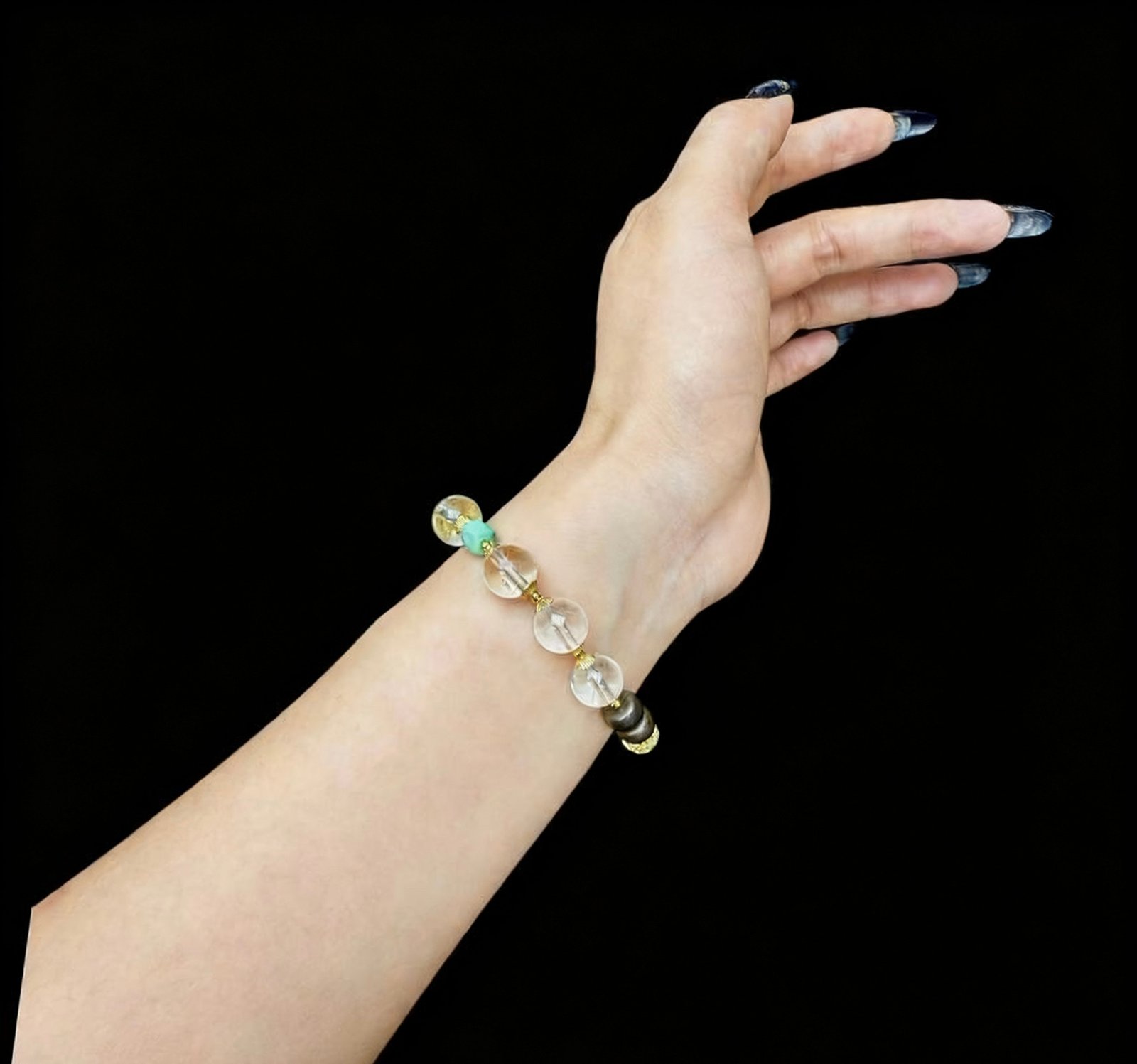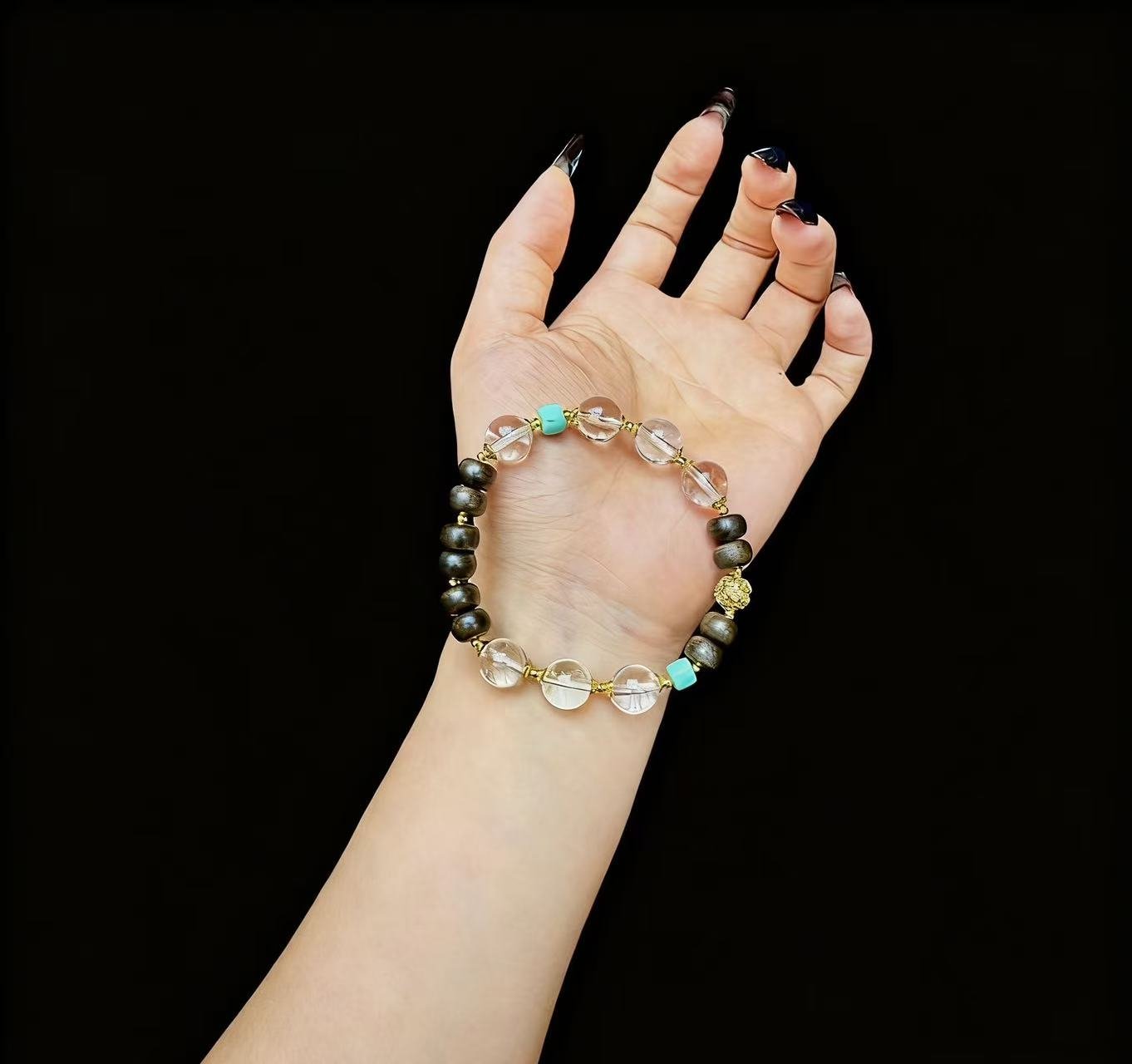 Together, they create a synergy of “light and gentle flow”—Clear Quartz builds a field of focused clarity, while Phosphophyllite wraps it in compassionate warmth. Designed for the modern woman seeking both mental clarity and emotional ease: wear it to sharpen focus, soothe everyday stresses, and remind yourself that true harmony lives where clear thought meets a tender heart.