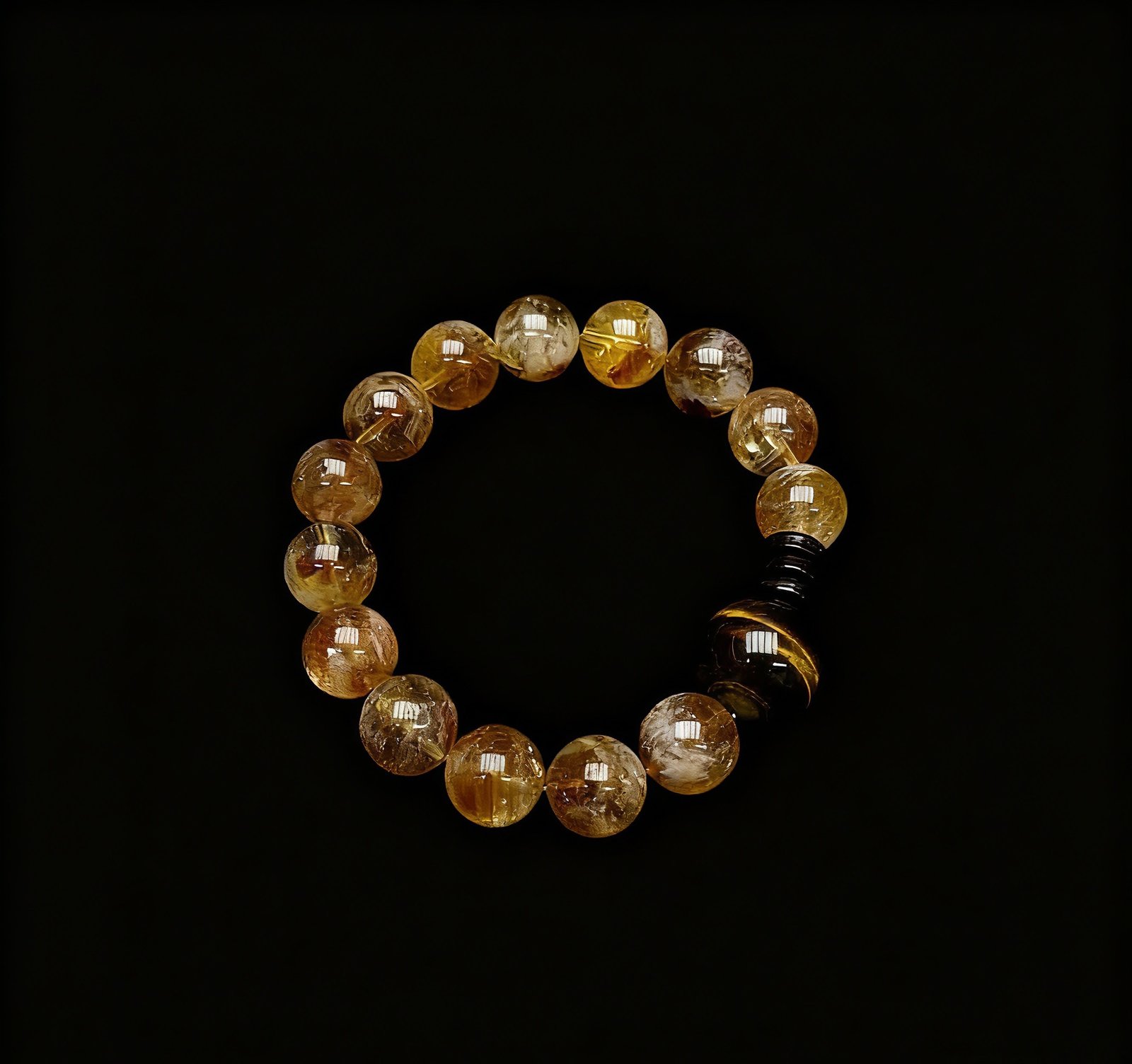 Where Eastern elemental philosophy meets Western energy healing, this bracelet weaves a golden matrix of focus and power. A string of Yellow Fluorite forms its foundation—in Eastern wisdom, yellow connects to Earth’s abundance and stability; in crystal practice, it’s the “light of the mind,” clearing mental fog and elevating focus. The single Tiger’s Eye bead acts as the energy anchor: in Eastern tradition, it’s a warrior stone for protection and prosperity; in Western chakra systems, it activates the solar plexus, igniting inner strength and decisive action.