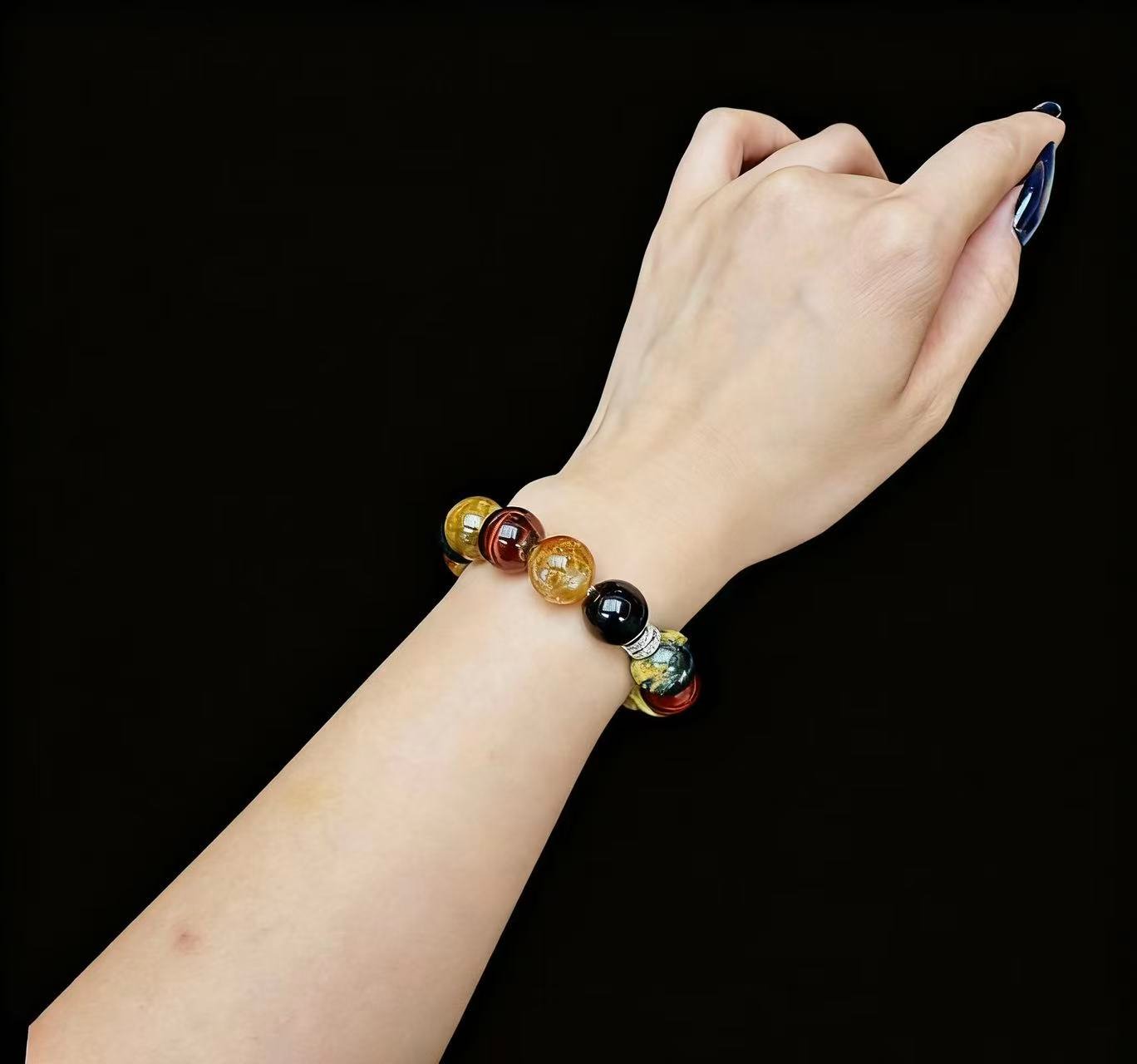 Where the Eastern flow of elemental harmony meets the Western practice of energetic manifestation, this bracelet combines six potent stones into a powerful “Abundance-Protection-Action” cycle.